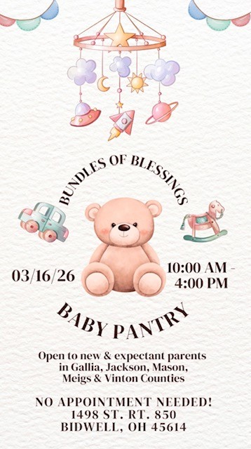 Open to new & expectant parents in Gallia, Jackson, Mason, Meigs & Vinton Counties No Appointment Needed! https://www.facebook.com/groups/1382713112009671 , ...
