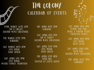 Karaoke Night Stop by for a fun Karaoke Night! Upcoming Events! https://www.facebook.com/thecolonygallipolis + Add to Google Calendar + iCal / Outlook export 00 days 00 hours 00 minutes 00 seconds Date Mar 27 2026 Time 7:00 pm - 9:00 pm Location The Colony Gallipolis 418 Second Ave, Gallipolis, OH 45631 Category Music Organizer The Colony Gallipolis Phone 740-339-2324 Email thecolonygallia@gmail.com Website http://facebook.com/The-Colony-Gallipolis-110291671766606 Share this event