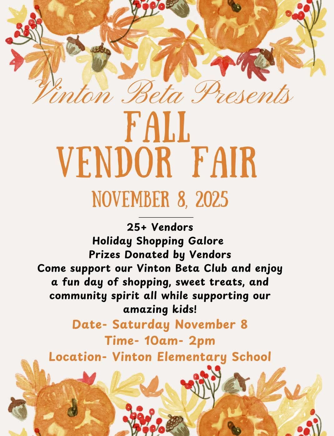 Come support our Vinton Beta Club and enjoy a fun day of shopping, sweet treats, and community spirit all while supporting our amazing kids!